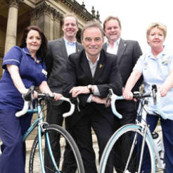 Picture: Launching the official partnership from left to right are: Louise Bryan (Marie Curie Nurse), Bernard Hinault, Tour de France ambassador and five times winner of the Tour de France, Carol Call (Marie Curie Nurse), Christian Prudhomme (Tour de France director) and Gary Verity