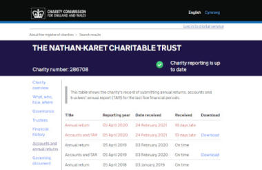 The Nathan Karet Charitable Trust, entry on the register now shows its accounts to have been filed 19 days late. Its 2020 accounts show as having been filed on 24 February, two days before he was announced as the Charity Commission’s interim chair.