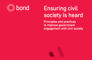 In a report published yesterday, Ensuring Civil Society is Heard, Bond said that there has been a "rapid decline in engagement" from government leaving the sector excluded from decision-making processes and exposing government policies and programmes to avoidable errors.
