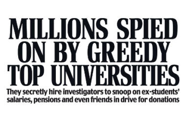 The Daily Mail has accused universities of “snooping” on former students by using wealth screening firms to find information about their lives, in an investigation published on its front page today.