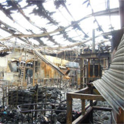 It was hit by a fire last Saturday. David McCullough, Oxfam's director of trading, said the damage had badly hit the operation.