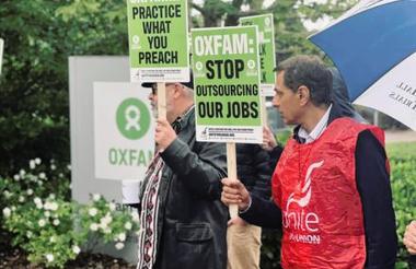 An Oxfam spokesperson denied it is replacing in-house roles with non-unionised labour and said the charity supports the right to protest as well as union rights.