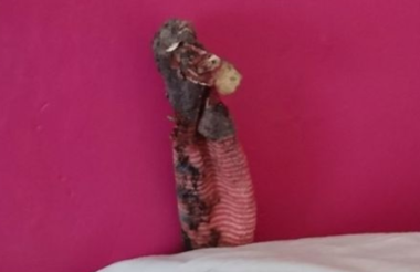 Animal Collection Officer, Vic Hurr, attended the scene and describe the potentially dangerous creature as, “around seven inches long and about two inches wide” which was “protruding from the edge of the bed and it wasn’t moving at all”.