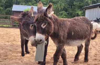 The charity said donkeys often like to play with wellies as an enrichment activity. The fact Harbin and Harry are holding onto the same welly suggests they need a couple more, guys. Do they need some boot donations?